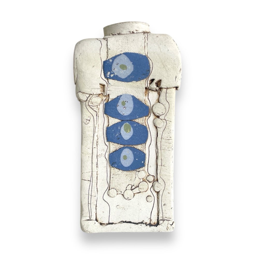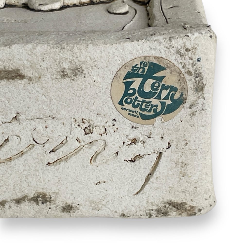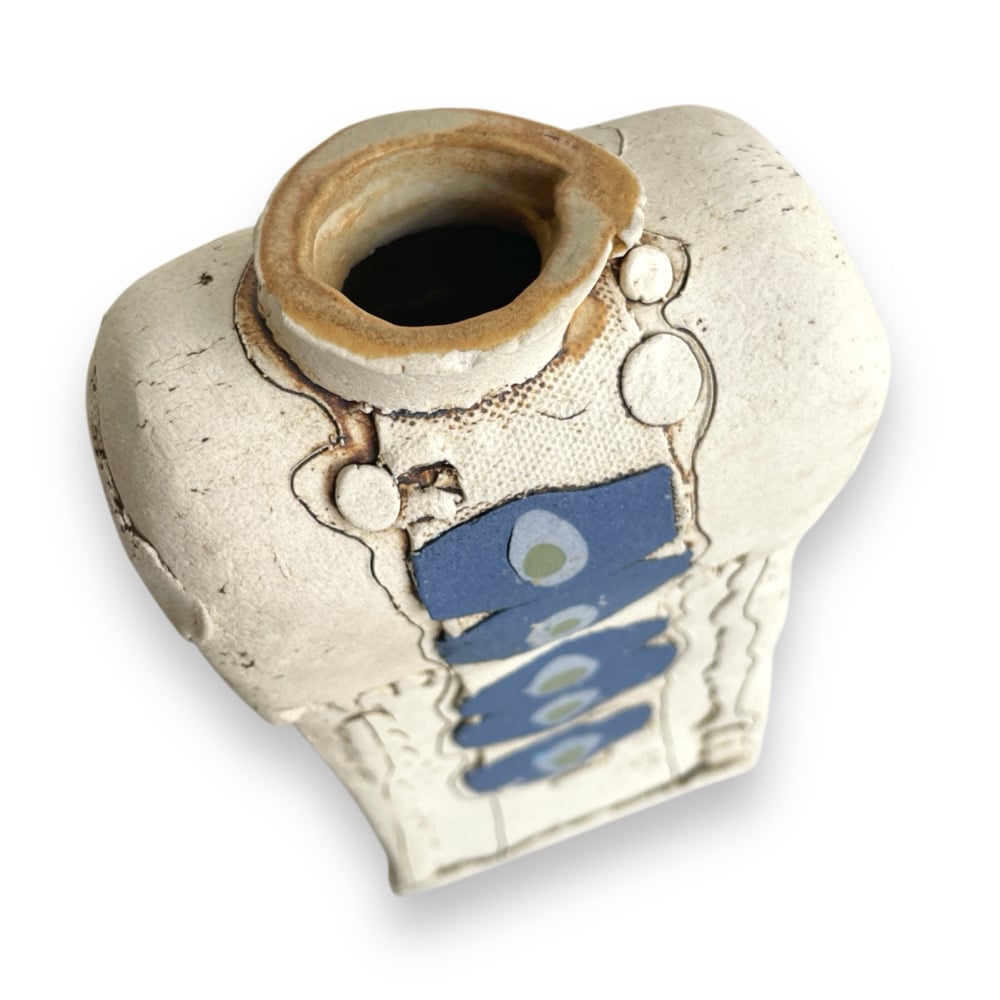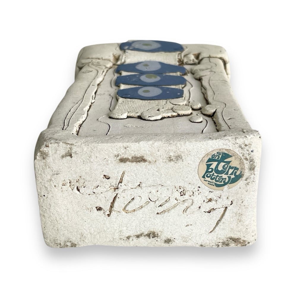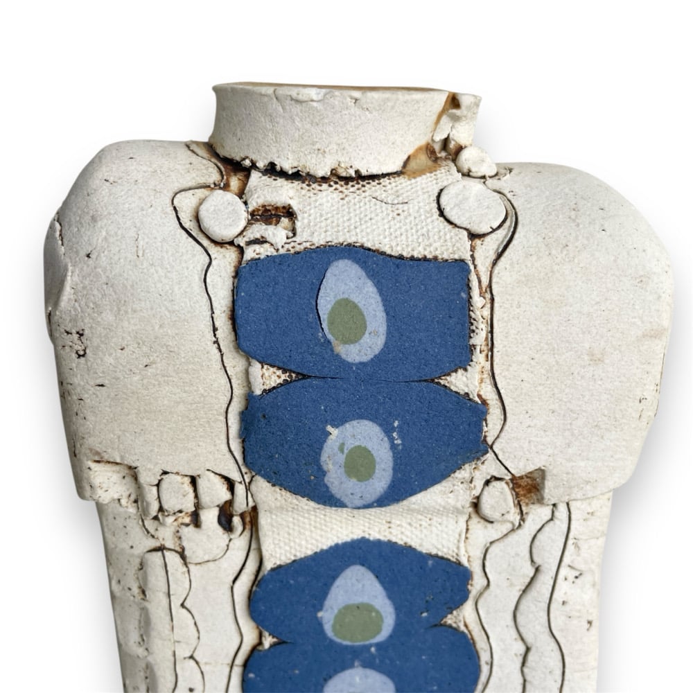 ITEM: vintage studio pottery vase from "The Terry Pottery" in Norwell, Massachusetts, active from the 1970s to the 1980s and created by Ralph and Sandy Terry. Known for their handcrafted pieces, this vase includes incredible details and incised designs. Signature and sticker on the bottom.