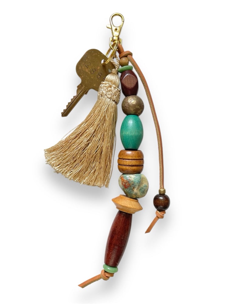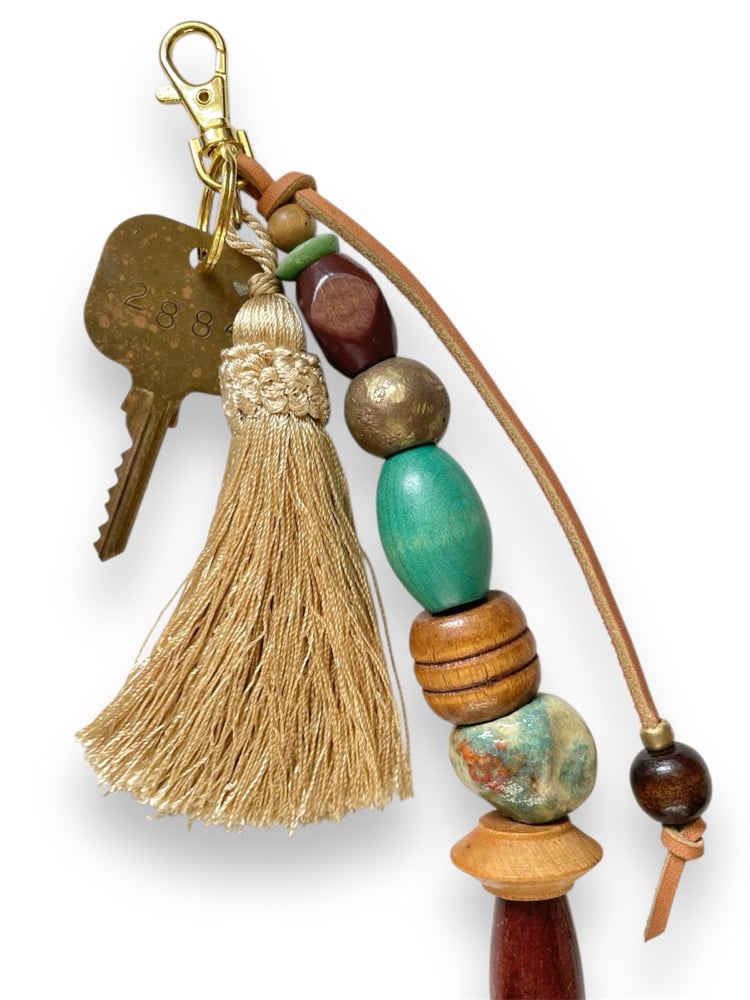 ITEM: add some personality to your bag or keys with this handmade accessory made from vintage and recycled objects. Key ring allows you to add your keys or even clip on more charms for a bolder statement.