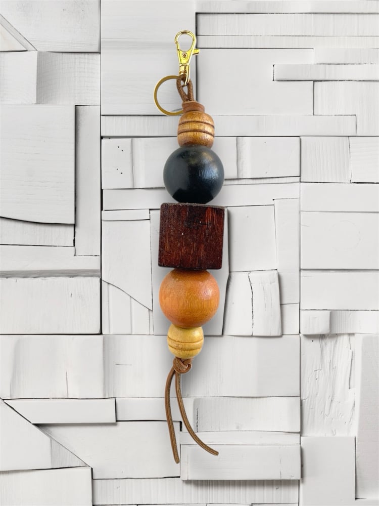 ITEM: oversized geometric shapes in a natural wooden palette combine for a bold statement. Clip on your favorite bag, or better yet, we love the idea of adding to a smaller bag like a cross body to enhance a sense of monumentality in true brutalist form.